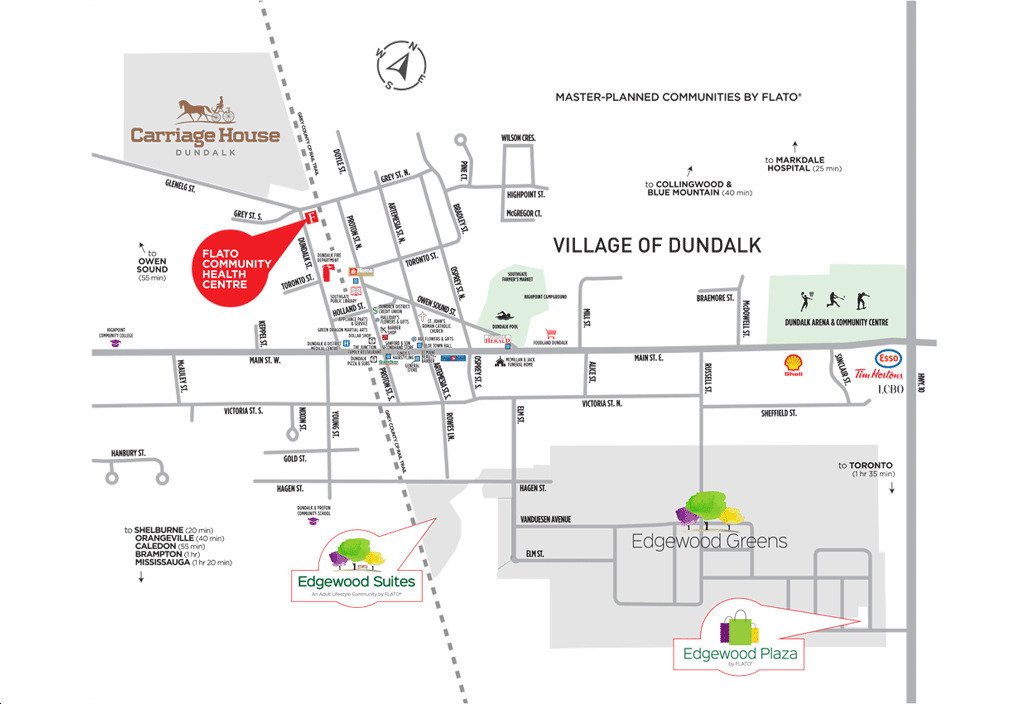 The Village of Dundalk offers that small town, tight-knit feel with a variety of local and independent vendors lining the streets of its quaint downtown. Residents of Edgewood Greens are located just minutes away from daily necessities and lifestyle amenities. Big city dining, shopping, and entertainment options can be accessed within nearby GTA cities including Brampton and Mississauga which are just over an hour away from home.